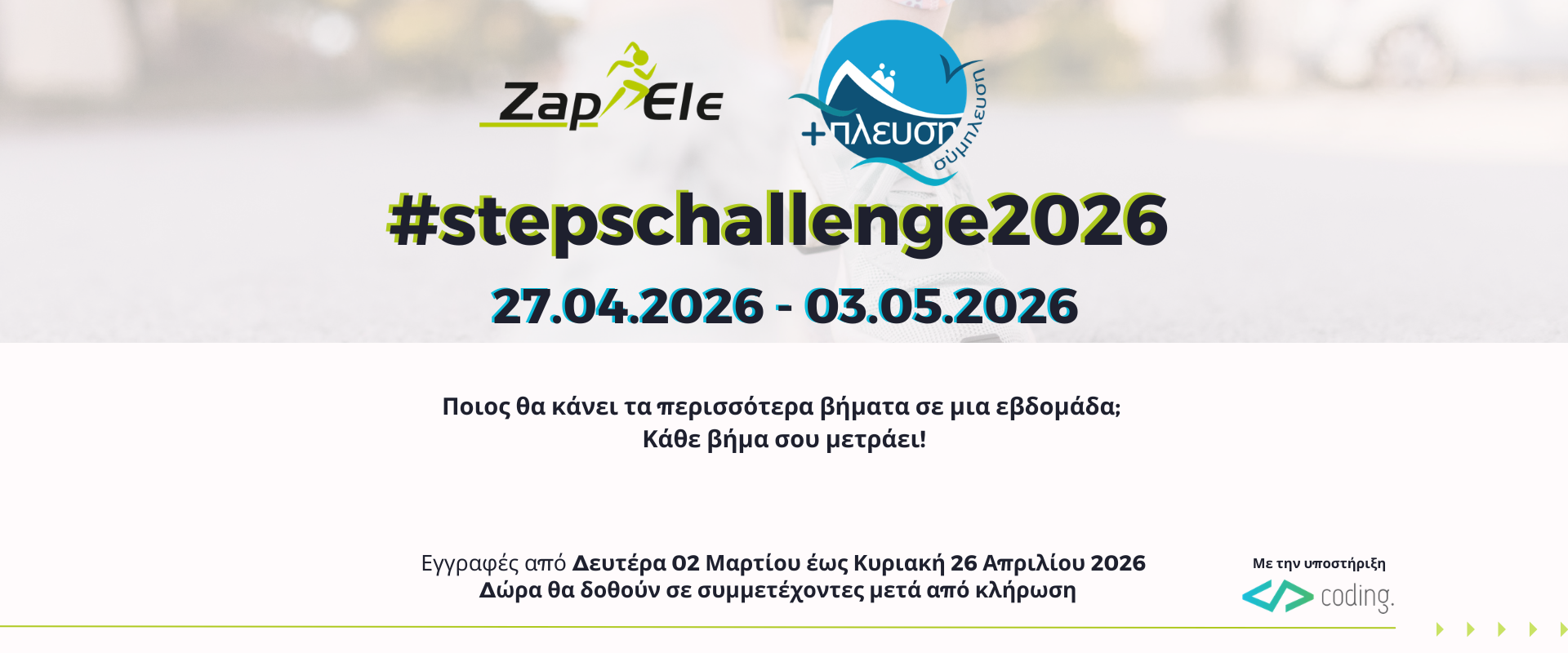 Το #stepschallenge2026 θα πραγματοποιηθεί από την Δευτέρα 27 Απριλίου έως και την Κυριακή 03 Μαΐου 2026.